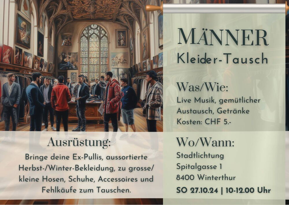 Kleider tauschen für Männer ist eine kreative und nachhaltige Möglichkeit, den eigenen Kleiderschrank aufzufrischen, ohne dabei neue Kleidung kaufen zu müssen. Bei einem Kleider-Tausch-Event bringen Teilnehmer ihre nicht mehr getragenen Kleidungsstücke mit und haben die Gelegenheit, diese gegen neue Teile einzutauschen. Dies fördert nicht nur den Austausch von Stil und Mode, sondern auch die Gemeinschaft, da Männer sich über ihre Vorlieben und Trends austauschen können.